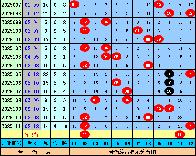 后鉴别析:在第112期历史同时开奖中,和值大小为8:9,跨度奇偶比为10:7,本期后区把稳两码02和11。