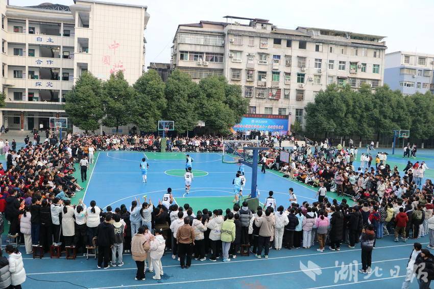 湖北日报客户端讯(通信员梁贤丹、金陈杨)随着终场哨声划破赛场,比分最终定格在77:72,恩施市小渡船中学男篮的队员们陡然得意,相拥庆祝得手,场边师生的应许声、喝彩声交汇在一齐,在篮球场上空久久飘浮。